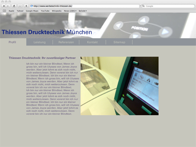 für eine werbetechnik firma wurde ein internet auftritt konzipiert und als dummy in flash umgesetzt um die möglichkeiten der seite zu zeigen: werbetechnik thiessen